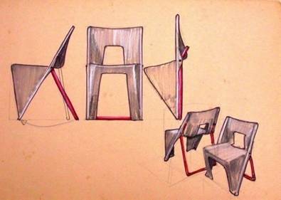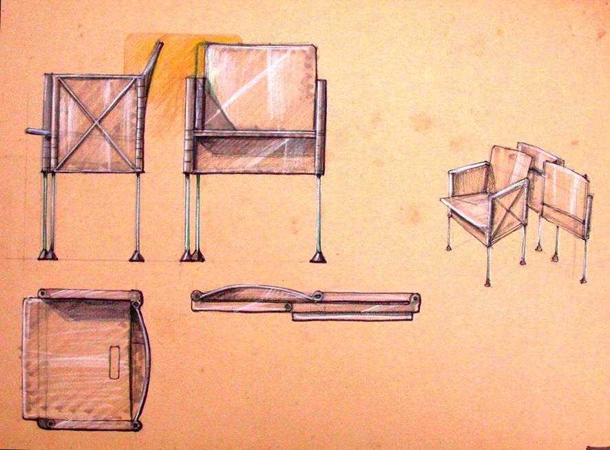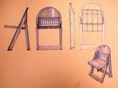 סקיצות לכיסאות מתקפלים שונים עשויים פלסטיק