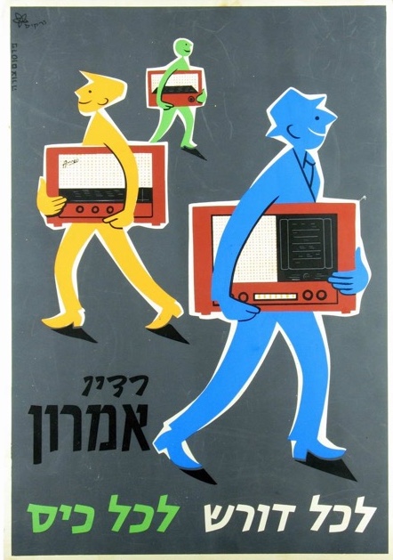 כרזה לפרסום רדיו אמרון, עוצבה על ידי צבי נרקיס, נדפסה בדפוס פרסום צורה.