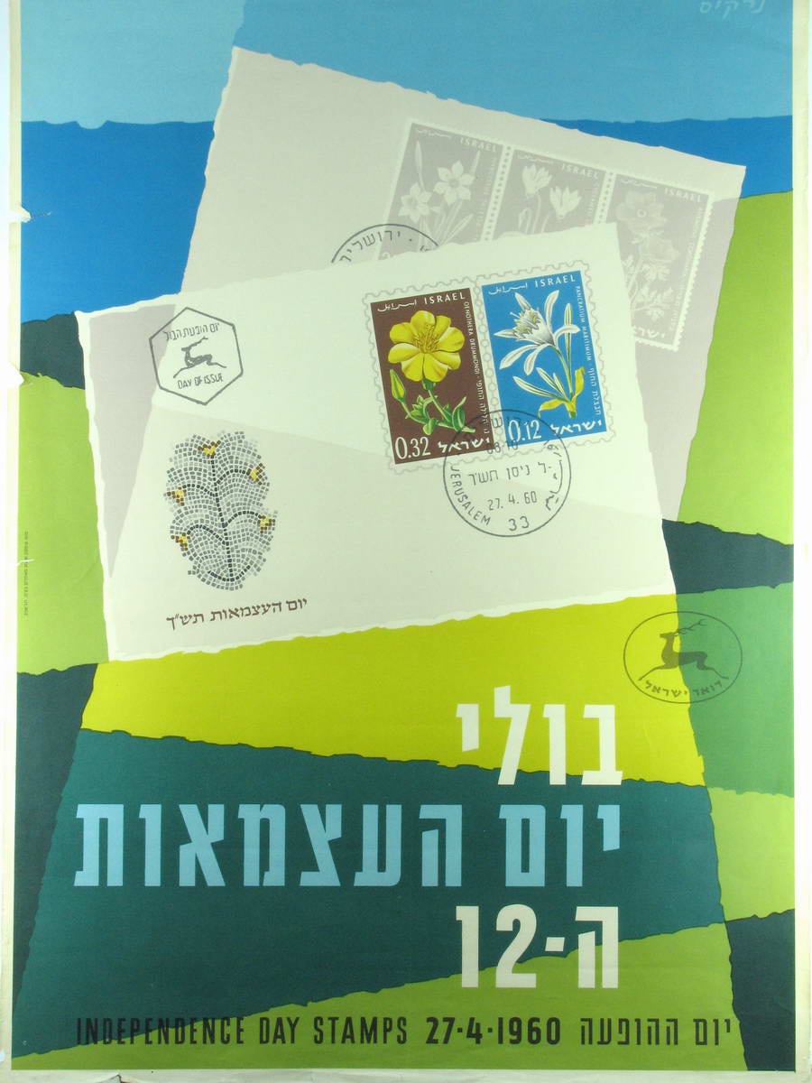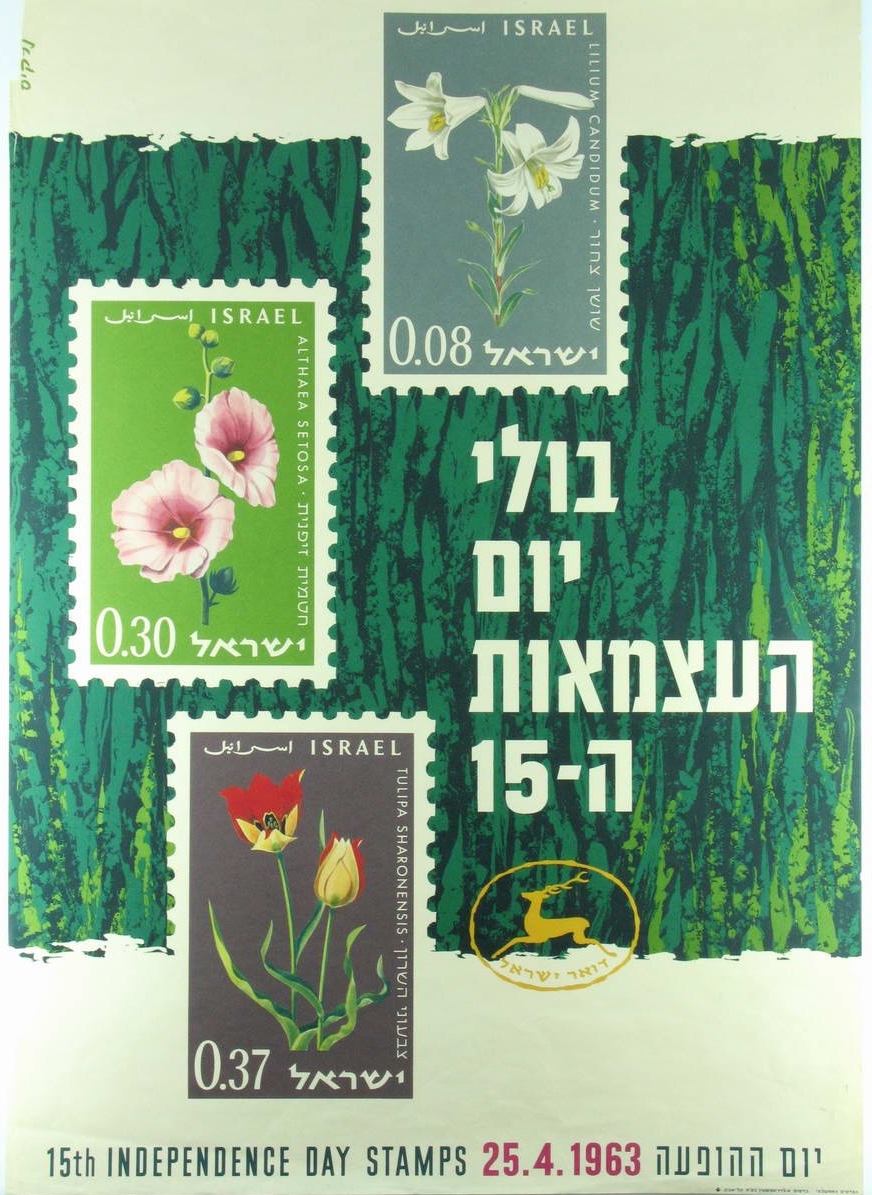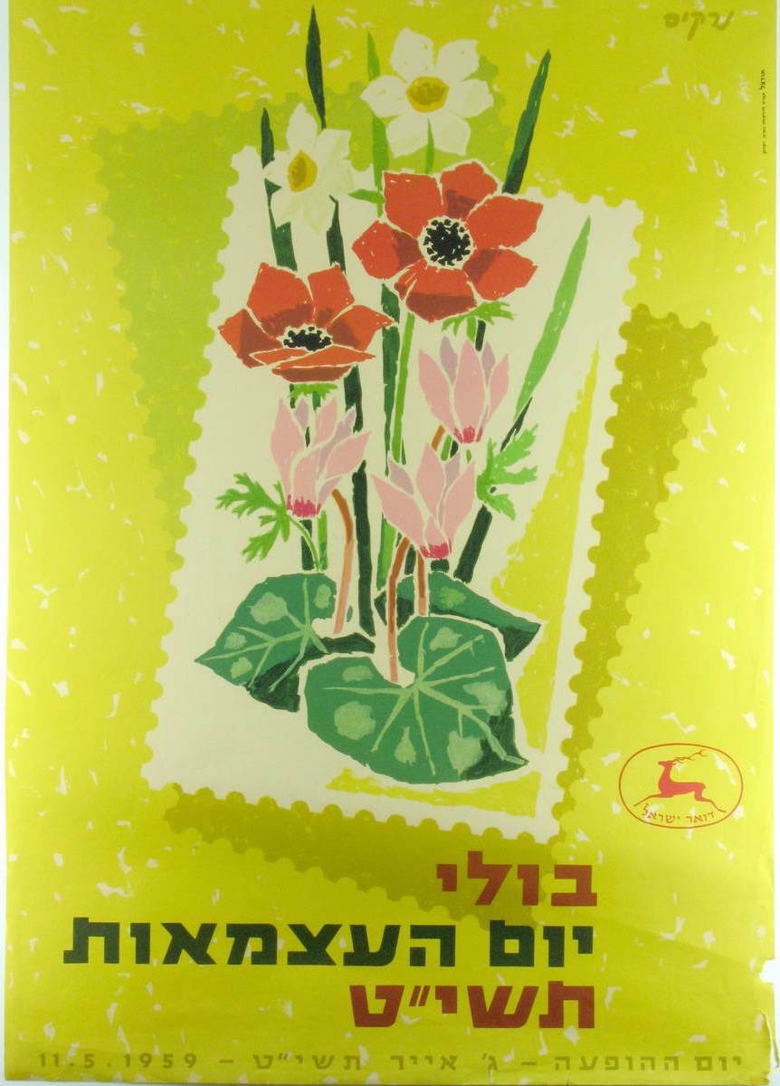 כרזות ״יום ההופעה״ ובולים מתוך סדרות יום העצמאות ויום הזכרון בין השנים 1959-1963. על הבולים מופיעים צמחי בר ארץ-ישראליים.