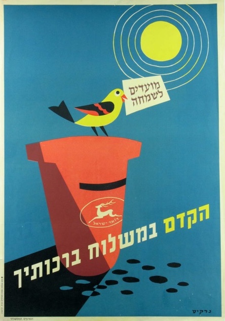 כרזה לדואר ישראל המעודדת משלוח ברכות מוקדמות לתקופת החגים, בכדי להמנע מעיכובים. המתווה לכרזה שונה מהכרזה הסופית שעוצבה.