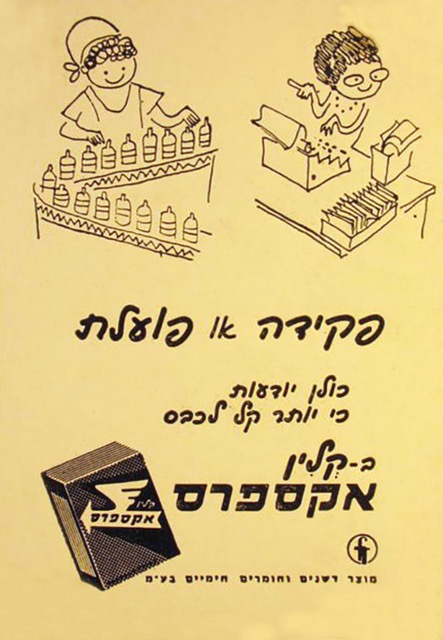 כרזות למוצרי חברת דשנים וחומרים חימיים בע״מ. המוצרים שווקו תחת השמות ״קלין אקספרס״, ״תינוקלין״.
