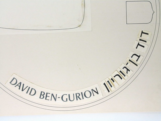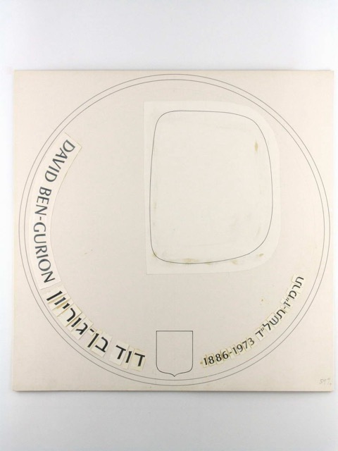 מתווה לעיצוב מטבע זיכרון חמש מאות לירות בהטבעה מיוחדת לכבוד דוד בן-גוריון.