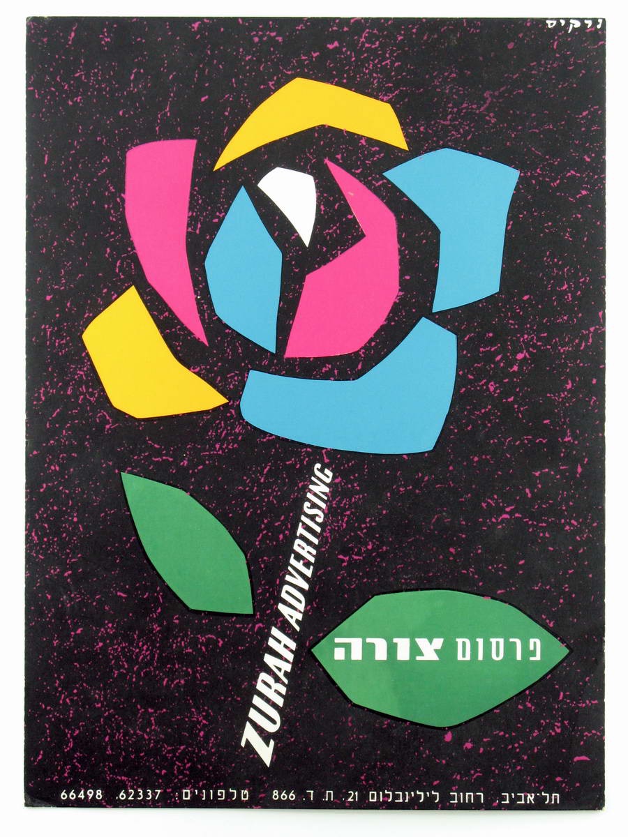 כרזה לחברת ״פרסום צורה״, חברת פרסום שישבה בתל אביב ברחוב לילינבלום.
