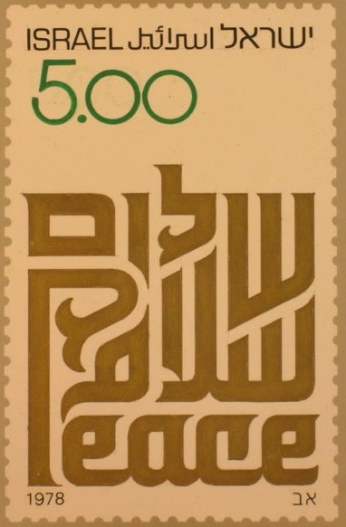 עיצוב תלת לשוני למילה "שלום" במבנה מרובע בו משתלבות המילים בצורה הרמונית. הופיע על גב מדלייה ממלכתית שהונפקה בשנת 1979 לרגל חתימת הסכם השלום עם מצרים. כאן ניתן לראותו במתווה לעיצוב בול.