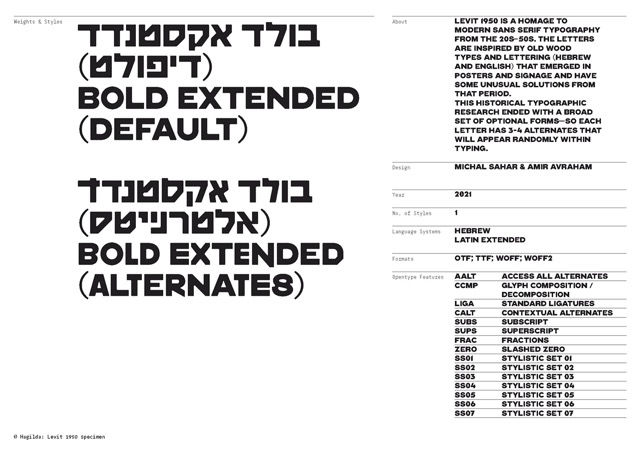 גופן לויט 1950 עוצב בהשראת טיפוגרפיה סן סריפית מודרנית מהעשורים הראשונים של המאה ה-20. עיצוב האותיות בהשראת אותיות שנוצרו בחיתוך עץ והודפסו על פוסטרים ושלטים מאותה התקופה. המחקר הטיפוגרפי הוביל לעיצוב של כמה חלופות לכל אות (בעברית ובלטינית), המופיעות באופן רנדומלי בזמן הקלדה.