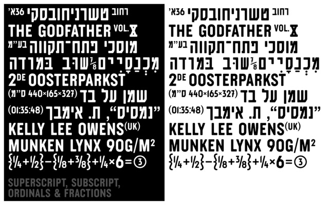 מתבסס על הגופן הקלאסי חיים צר משנות ה-1920 בעיצוב יאן לוויט. הגופן הדו לשוני כולל אותיות עבריות ולטיניות, סמלים וספרות וכן גרסת מונוספייס.