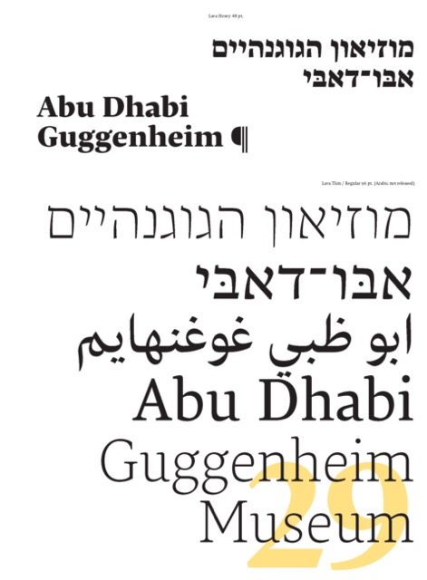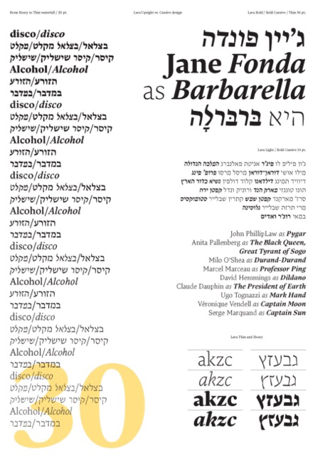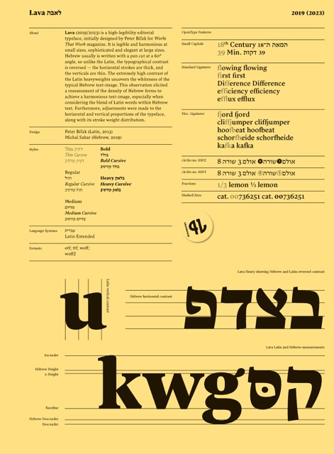 גופן לאבה עוצב על ידי פיטר בילאק (Typotheque) עבור מגזין Works That Work. בגרסה העברית נלקחה השראה מהכתיבה הידנית בעט קליגרפי בזווית של 60°, בשונה מהקונטרסט הטיפוגרפי הלטיני - כך שהקווים האנכים הם העבים והורטיקליים - דקים. ההבדל ביניהן יוצר צבע טיפוגרפי שונה לעמודי טקסט בשפות השונות, שנדרש לכיוון מחדש כדי להגיע לאחידות בפונט.